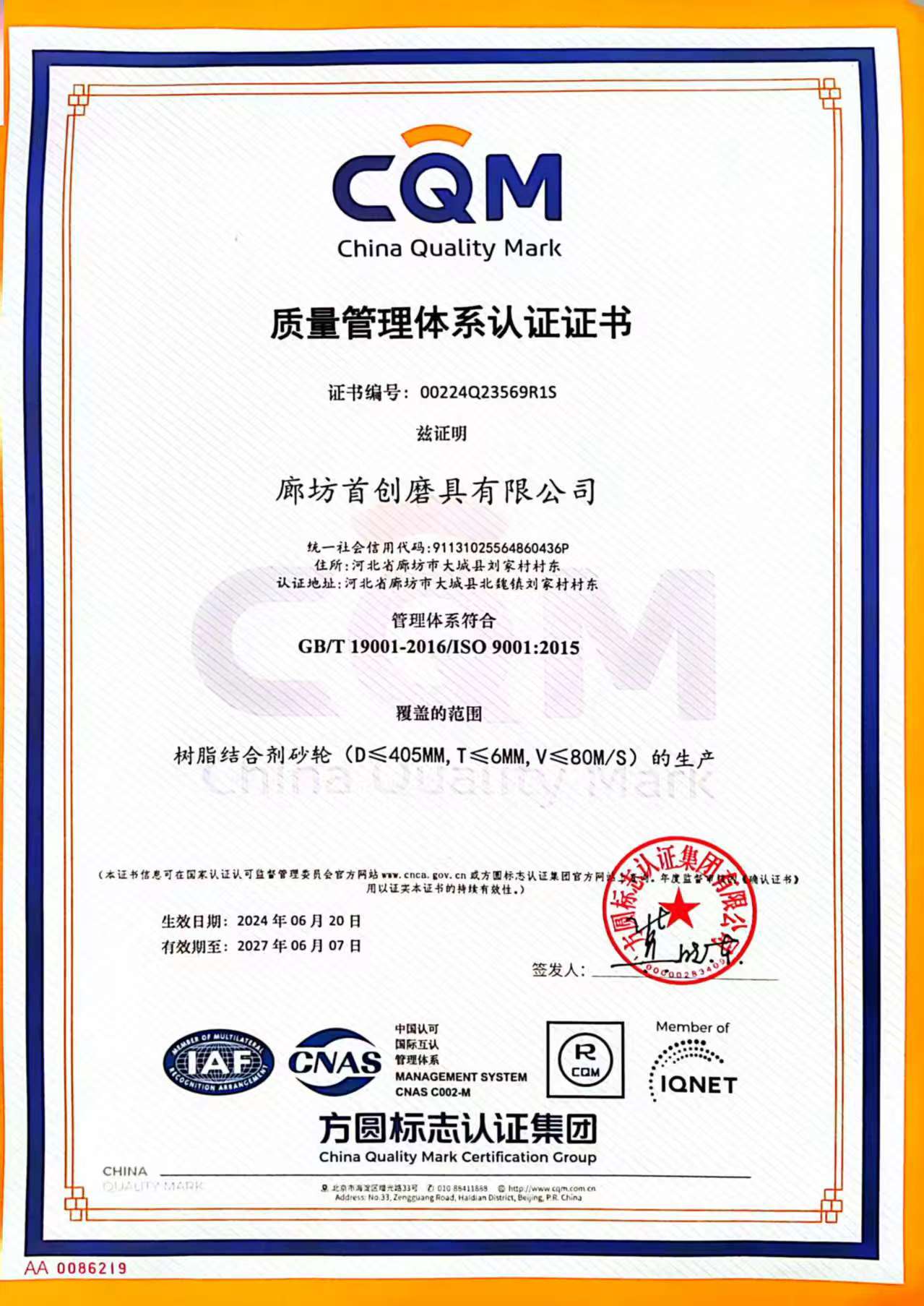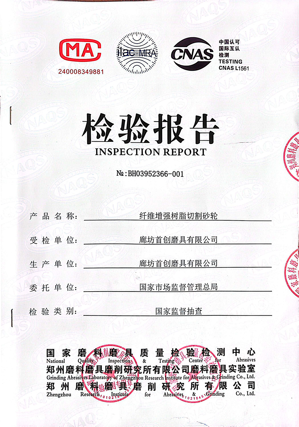 磨料磨具证书