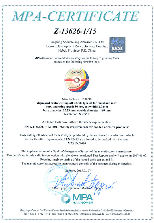 磨料磨具证书